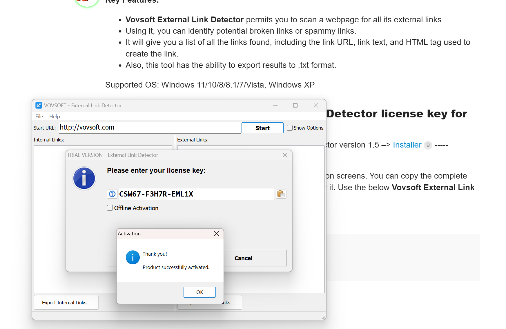 How to get the Vovsoft External Link Detector license key for free?