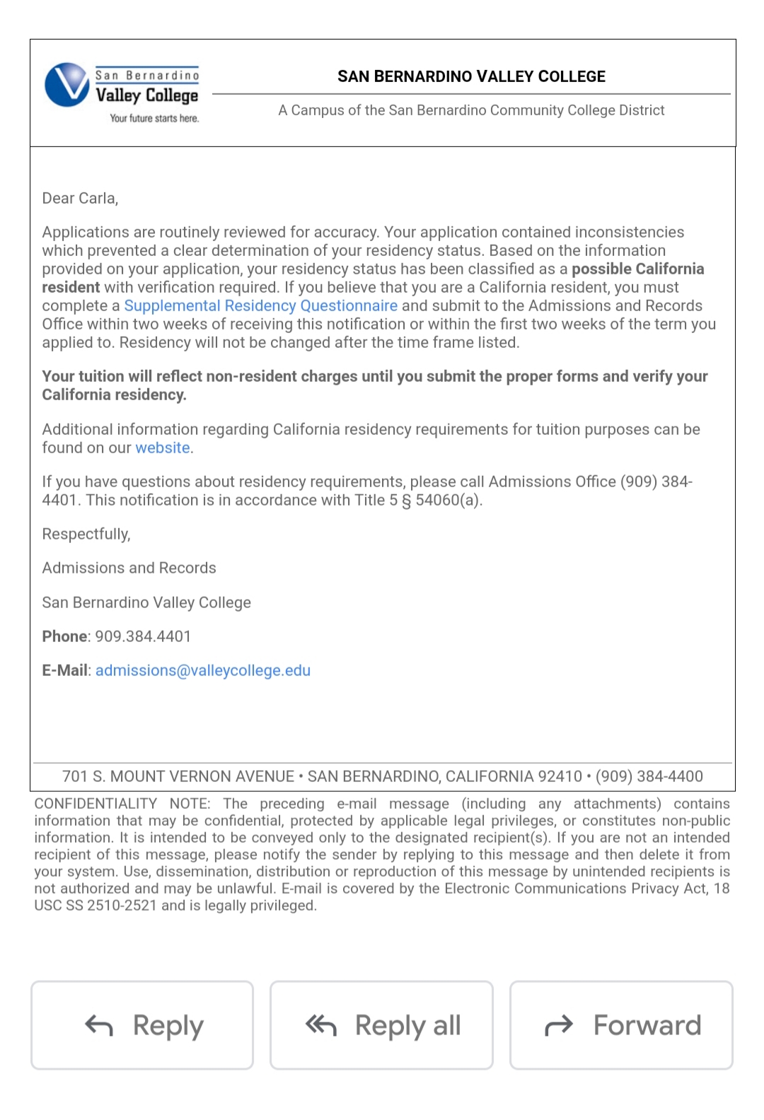 It is probably because the address you used in the beginning whiles filling the form was not California address; because somewhere along the line, you confirmed you were in California. Don’t worry, your student ID will be sent to you. Just relax. Enjoy.