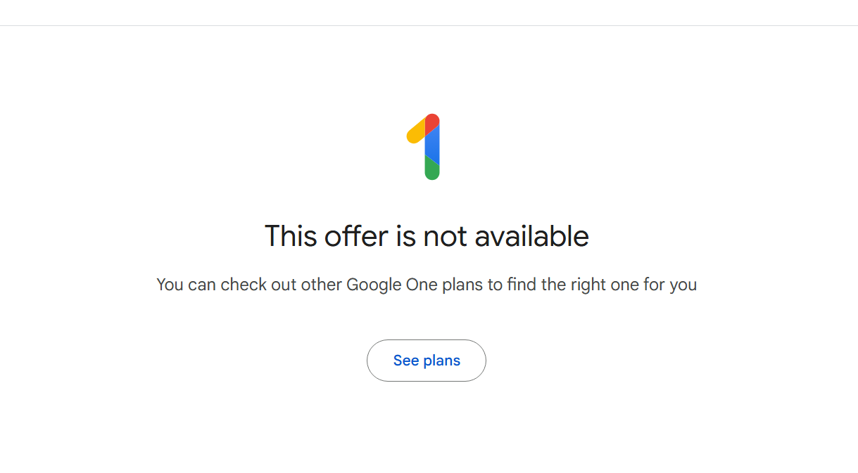 “This offer is not available. You can check out other Google One plans to find the right one for you.”