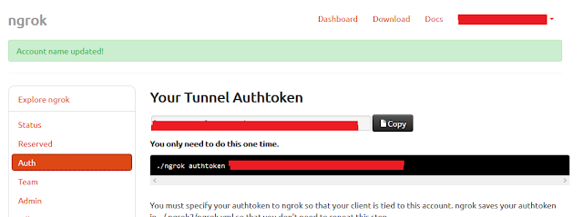 Below Screenshot is my Ngrok Dashboard. Here this will provide you a token and it will act as Authorization for your TCP tunnel.