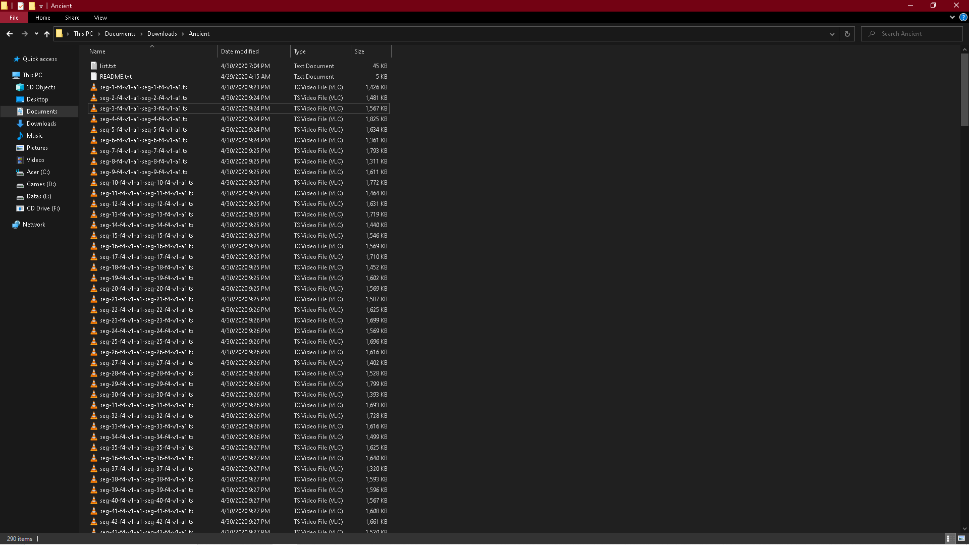I have downloaded more than 200+ .ts file its a TV Show, Ancient alien. I have tried playing them on vlc but it’s not working. if I combine them and play will it play?