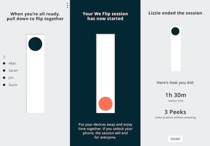 The way the Google experimental app works is, in a group of people you pair your phones together. When you “flip the switch” a new session starts. Then if/when someone unlocks their phone, the session ends and gives you the stats on how you did as a group.
