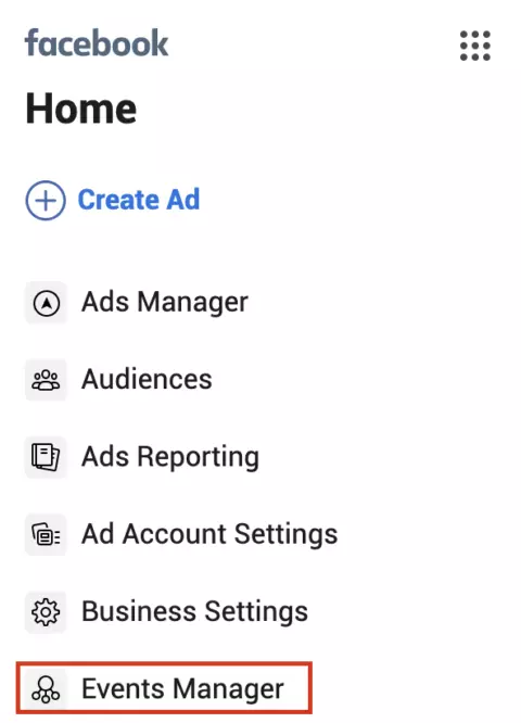 Get started by selecting “Events Manager” in the new Facebook navigation sidebar.