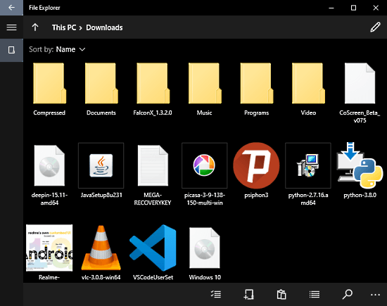 Doing this instantly opens the new File Explorer interface on your screen. The new interface is minimal with lesser options and follows the UMP design. It only has ‘This PC’ pin on the left and there is no “Quick Access” (yet). View options are also lacking some options and you cannot drag and select items.