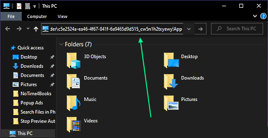 After verifying the Windows build, open the current File Explorer, paste the following command in the directory address bar and press the Enter key.