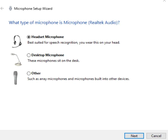 - Follow the instructions from the wizard and test the microphone to make sure it is working correctly.