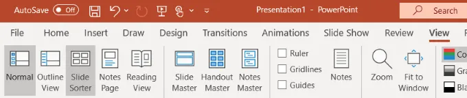 - The timings for each slide will show up in the Slide Sorter view. To see your timings, click on View > Slide Sorter .