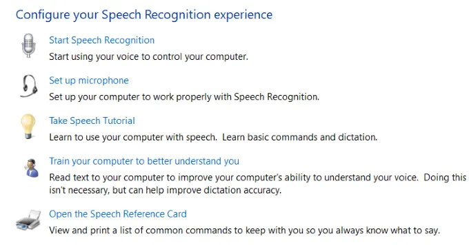 - Under Configure your Speech Recognition experience , click on Set up microphone .