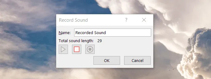 - To hear your recording, press the play button. If you like how it sounds and want to keep it, click OK .