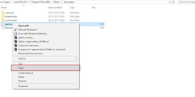- Now Copy the appmanifest and the game folder from common into a safe location.