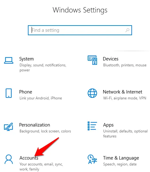 Click Start > Settings and select Accounts .