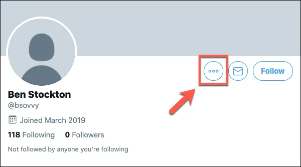Once you’re on the profile of the user you wish to block, press the three-dots menu icon next to the message and follow buttons.