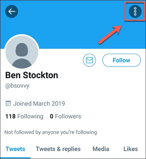 Once you’re on a user’s profile, tap the three-dots menu icon in the top-right.