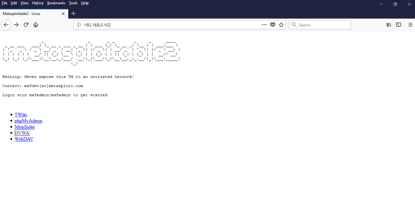 Open the open Metasploitable 2 IP in your browser and then select DVWA