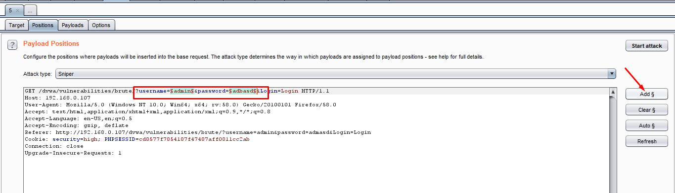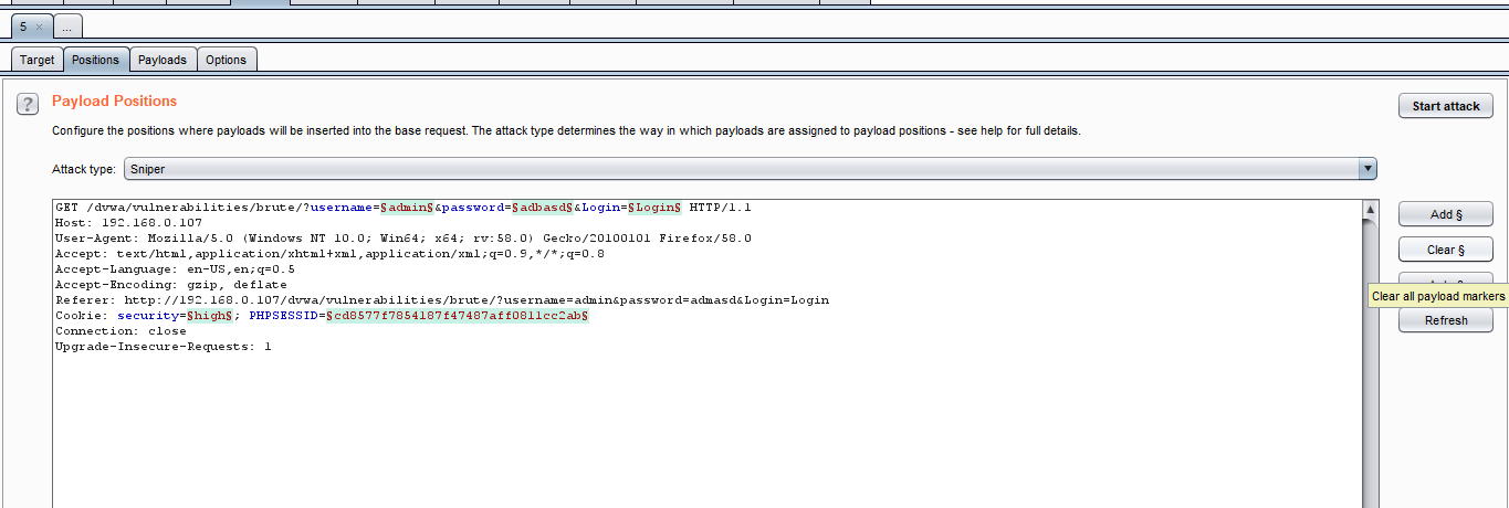 Now go to intruder tab and click on β Positions β tab, and then click on clear.