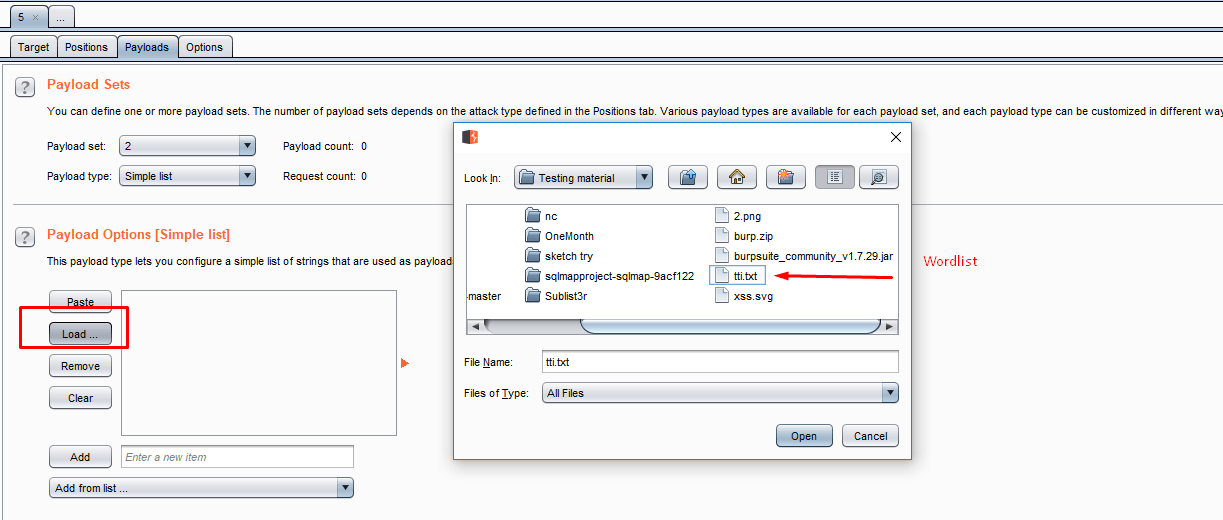 After that, you need to import your brute force wordlist that you will use to brute force. So in β Payload Options β click on β Load β