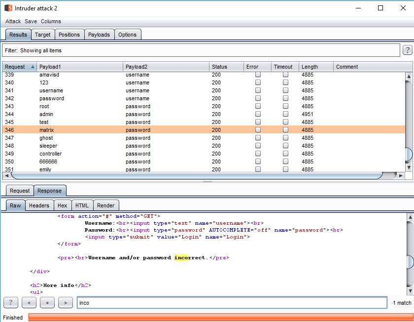You can see that total words in my wordlist are 19 and as we have selected Cluster Bomb 50,176 request will be made. For example, everyone Username will have 19 password tries so 19*19= 361 .
