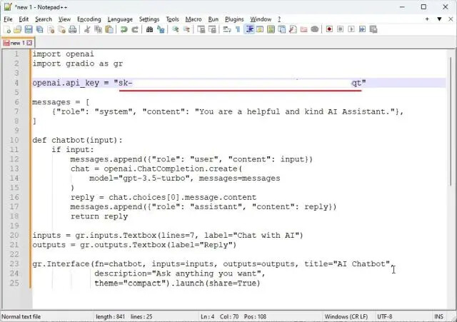 Build Your Own AI Chatbot With ChatGPT API and Gradio