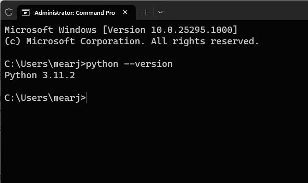 - To check if Python is properly installed, open Terminal on your computer. I am using Windows Terminal on Windows, but you can also use Command Prompt. Once here, run the below command below, and it will output the Python version. On Linux or other platforms, you may have to use
