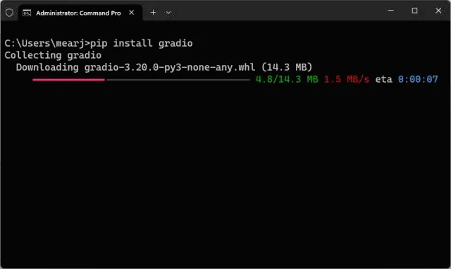 - After the installation is done, let’s install Gradio. Gradio allows you to quickly develop a friendly web interface so that you can demo your AI chatbot. It also lets you easily share the chatbot on the internet through a shareable link.