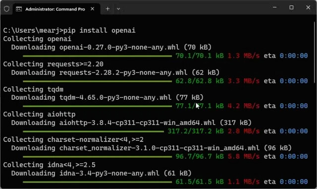 - Now, it’s time to install the OpenAI library, which will allow us to interact with ChatGPT through their API. In the Terminal, run the below command to install the OpenAI library using Pip. If the command does not work, try running it with