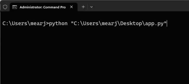 python, add a space, paste the path (right-click to quickly paste), and hit Enter. Keep in mind, the file path will be different for your computer. Also, on Linux systems, you may have to usepython3.