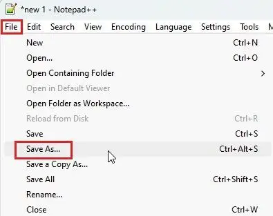 - Next, click on “File” in the top menu and select “Save As…” from the drop-down menu.