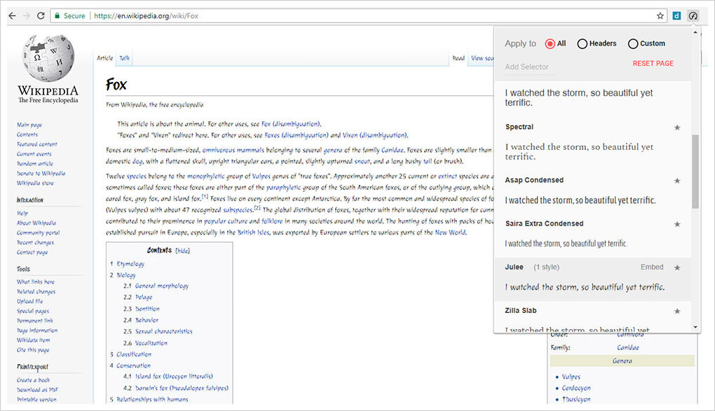 No question this is one of the most useful font testing tools for web designers. It’s a totally free extension and it works on basically every website, even on pages that you’re testing locally from your computer.