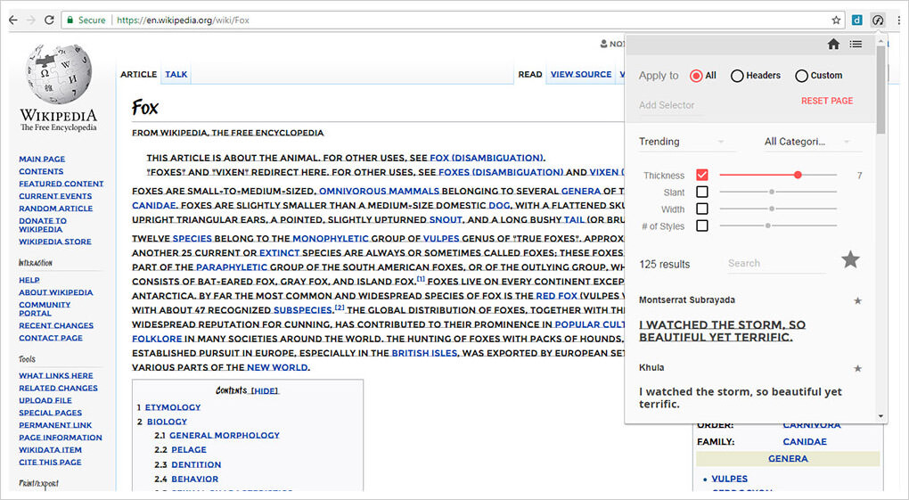 It’s a free plugin for Chrome that lets you change out fonts based on certain filters. You can find whatever font a website is using, then target that font and replace it with anything else you like.