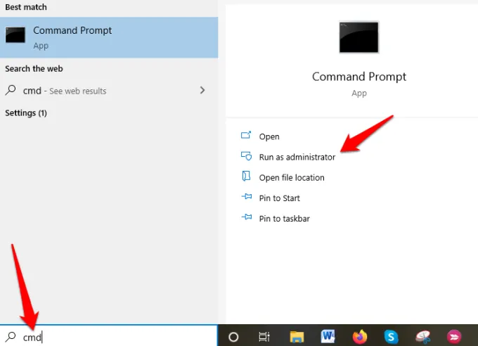 - Open an elevated Command Prompt by typing CMD in the search bar and clicking on Run as Administrator.