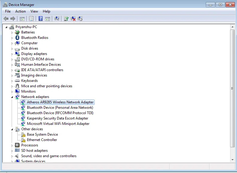 > Press the Windows Key + Fn +Pause key and select Device Manager from the list.
