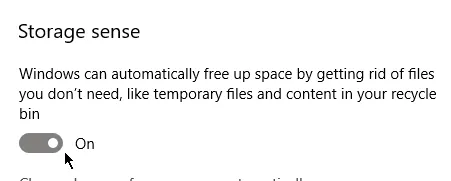 Go to Windows Settings > Storage . Turn on Storage Sense to activate the feature.