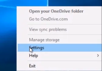 Go to your System Tray and right-click on the OneDrive icon. Click Settings .