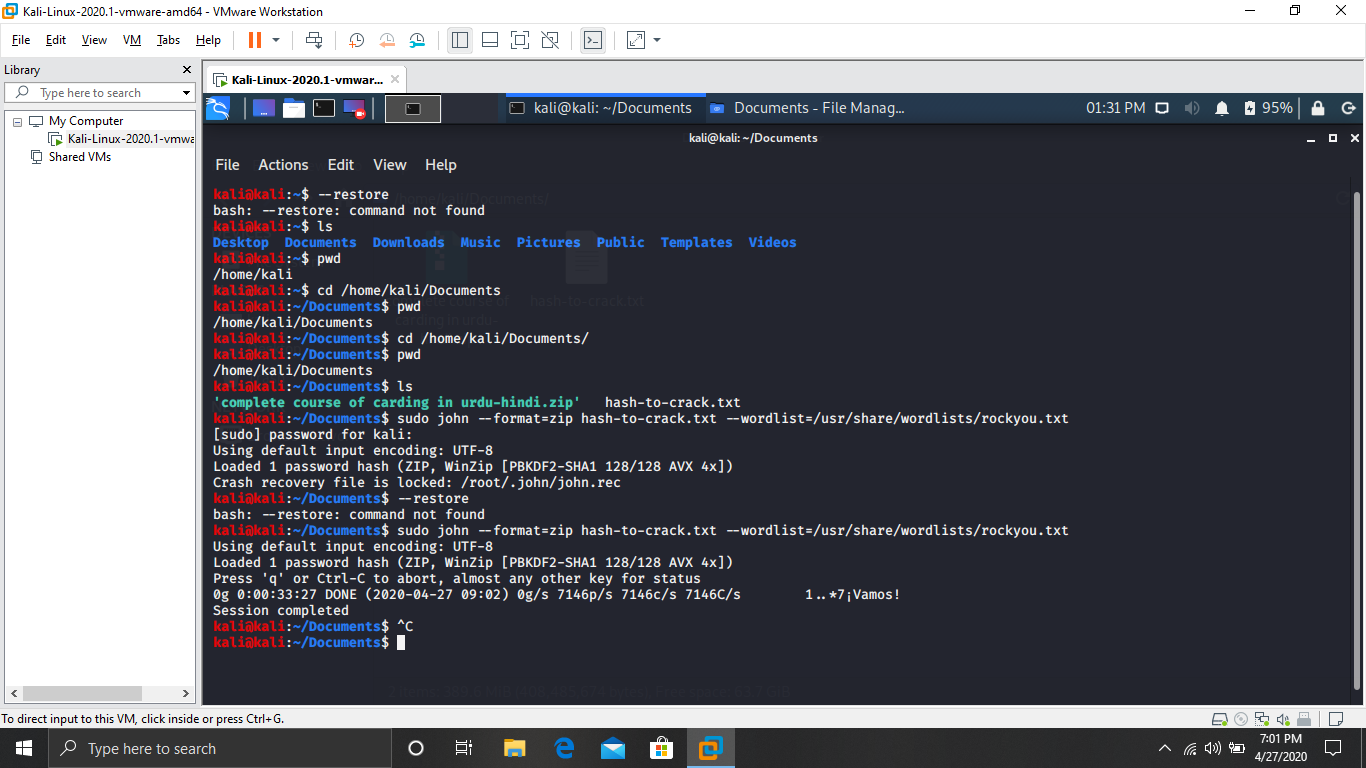 In order for us to crack this password, we need to first extract its hash. Luckily, John The Ripper has everything we need built-in. Let’s spin up a Terminal window and get started. Start by making sure you’re in the correct directory that contains the ZIP file.