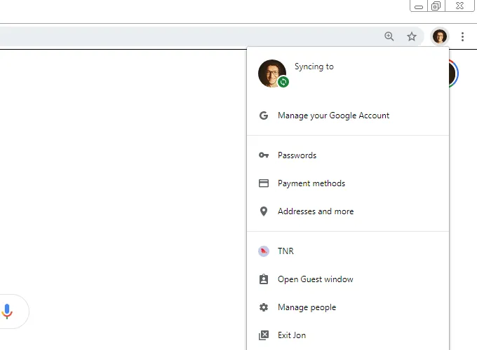 To switch between Chrome user profiles, select the user’s image at the top of Chrome and then pick a different profile from the list.