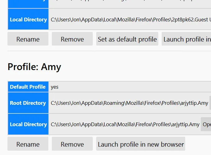 To temporarily switch the Firefox user profile, return to the about:profiles page and select Launch profile in a new browser .