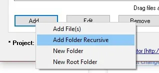 - Enigma also needs to know where the dependent files are. So next, click on Add then Add Folder Recursive , since we want all the subfolders to include as well.