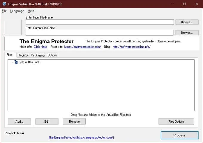 - Head over to the Enigma website and download Enigma Virtual Box. Install the application and then launch it.