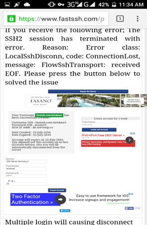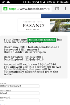 Similarly when you enter username on Create Username for 1 week and click on Create SSH account then another page appears.
