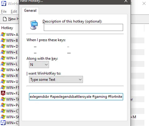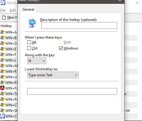 Now, type or paste the text into the box at the bottom of the new hotkey window. Finally, make sure to choose a new keyboard shortcut you haven’t used before.
