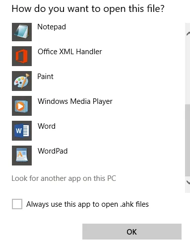 Once you’ve downloaded it, extract the file to a memorable location. Then, in the directory, double click an .ahk file, then when asked, choose to browse what application should be used to open such files. Next, browse and navigate to AutoHotkeyU64. This will allow you to run AutoHotkey scripts by double-clicking them.