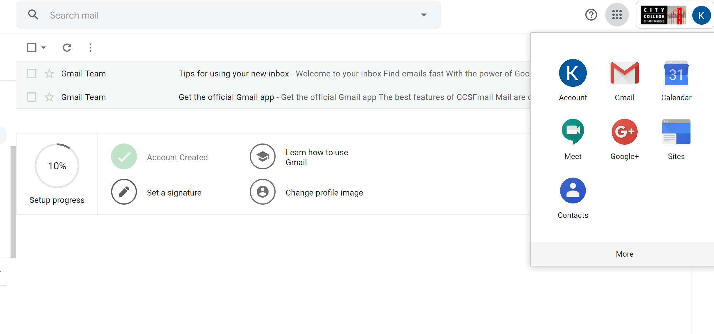 ccsf has restricted your access to their drive and gmail. You will not be able to use drive or recieve any message to this mail until they unblock the access. I don’t know the procedure to unblock it cuz I had registered 2 moths before and that time they were giving full access. A Full featured ccsf mail will look like this