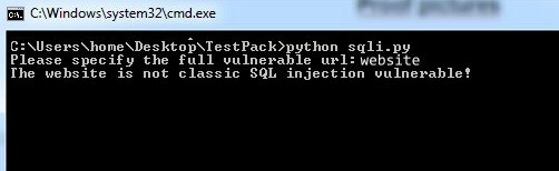 - You’re done creating it. Now it’s time to run and test your program. To run, just type in cmd, python sqli.py. It will ask for website to scan. Just put a website and hit enter.