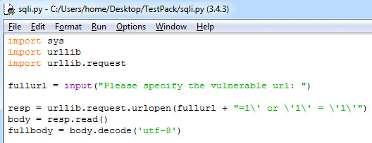Note: This is just a simple program to learn about Python. It doesn’t do any in depth SQL vulnerability scanning.