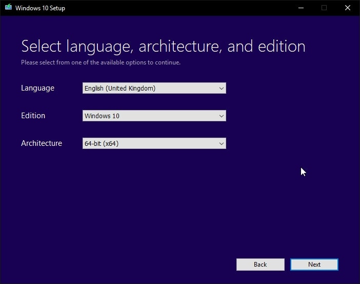 You will now be asked to choose the language, edition, and the architecture of the Windows. So, select that as per your requirements.