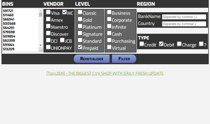 Click Filter and Taaraaaaa, You got Master Card BINS for different Countries so prepare your VPN