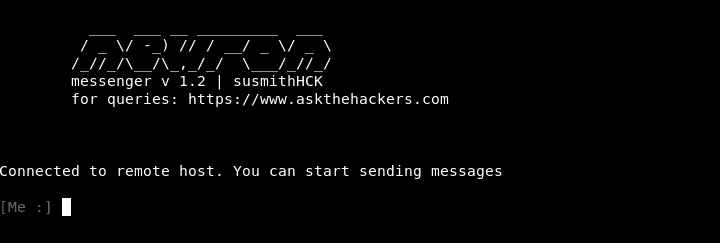 We have set the hostname and password. Now we are connected to the server. We can share the chat room with others. It will send only encrypted conversation.