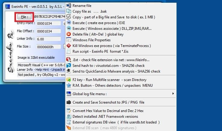 This tool doesn’t require any installation. We can download it from Net, and simply Run EXEINFO.exe file on computer.