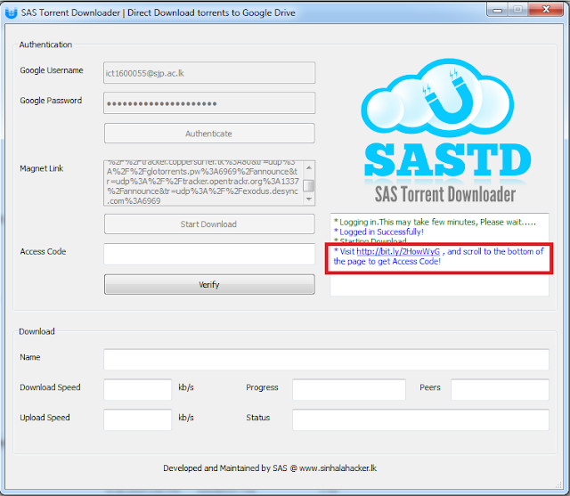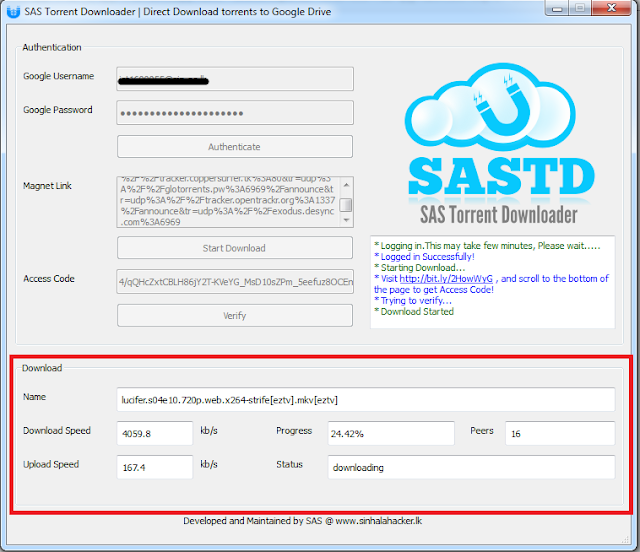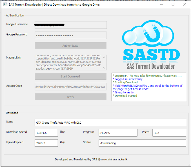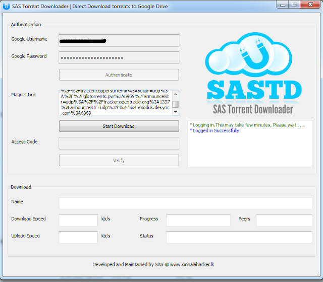 So now Iβm going to introduce you to this software , βSAS Torrent Downloaderβ which will help you to download Torrents to Google Drive.Interesting part, It is totally FREE!