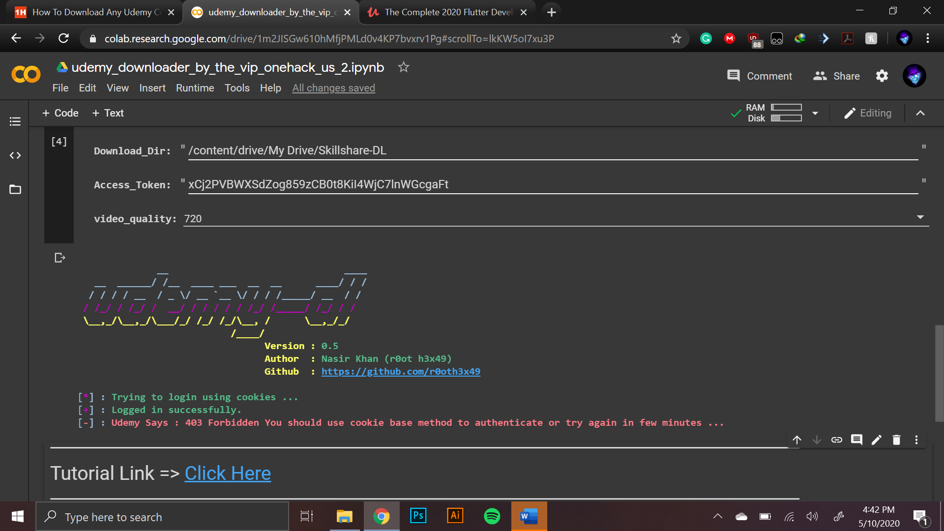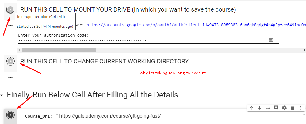 In the last cell where course link etc is asked, paste your desired path in download dir paste the path from left folder icon and paste it there and the n run it